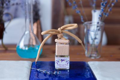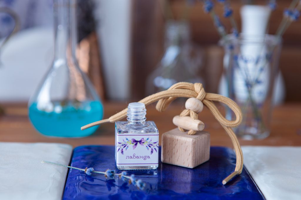 Способ использования: открутить деревянную крышку, в пластиковой заглушке сделать отверстие шилом или ножницами, закрутите обратно деревянную крышку, переверните флакон, наша задача немного напитать крышку ароматической жидкостью. Подвесите флакон на шнурке, так чтобы он не мешал вождению.