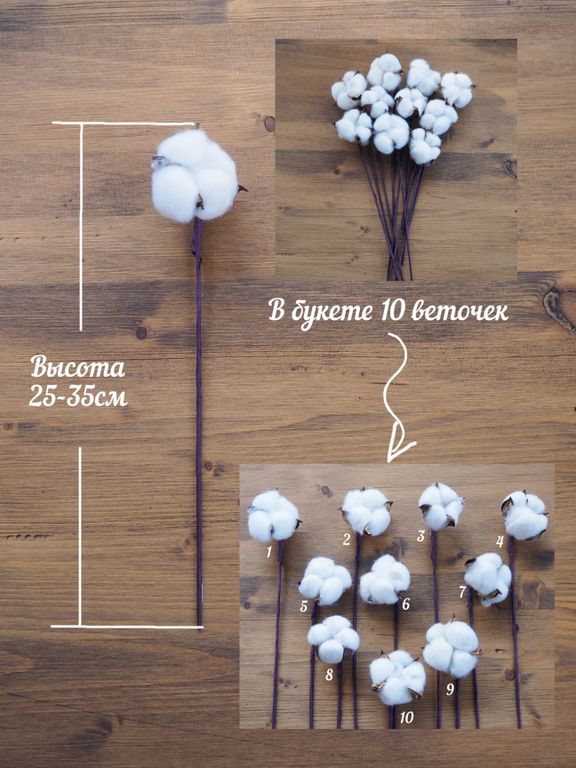 Букет из сухоцветов «Хлопок» 10 веточек.