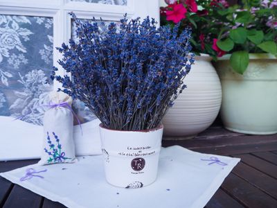 Для составления композиции, использованно 2-3 букета "Крымская Лаванда".