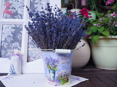 Для составления композиции, использованно 3-4 букета "Крымская Лаванда".