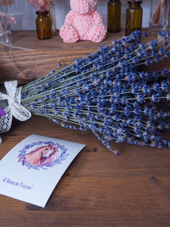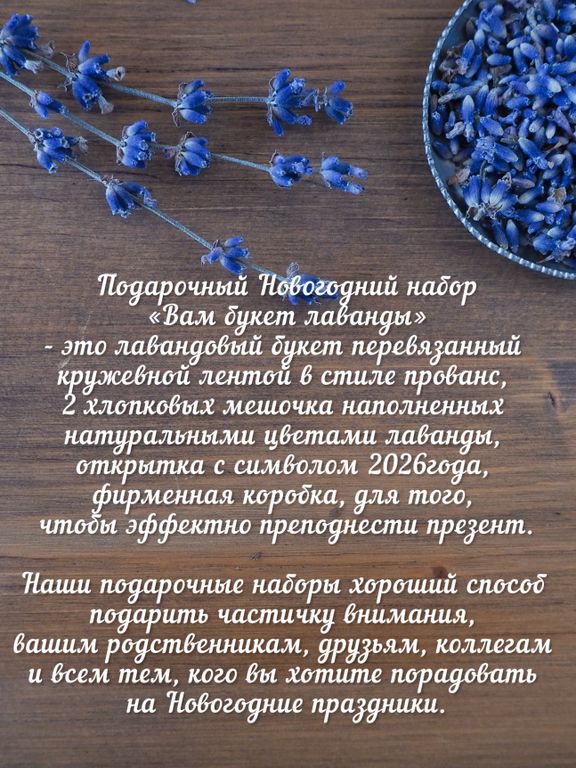 Подарочный «Вам букет лаванды» в подарочной упаковке букет лаванды + ароматические лавандовые саше "Мистер Иго-го и леди Зорька".