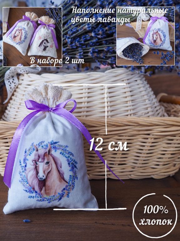 Лавандовые саше с символом 2026 года в подарочной упаковке