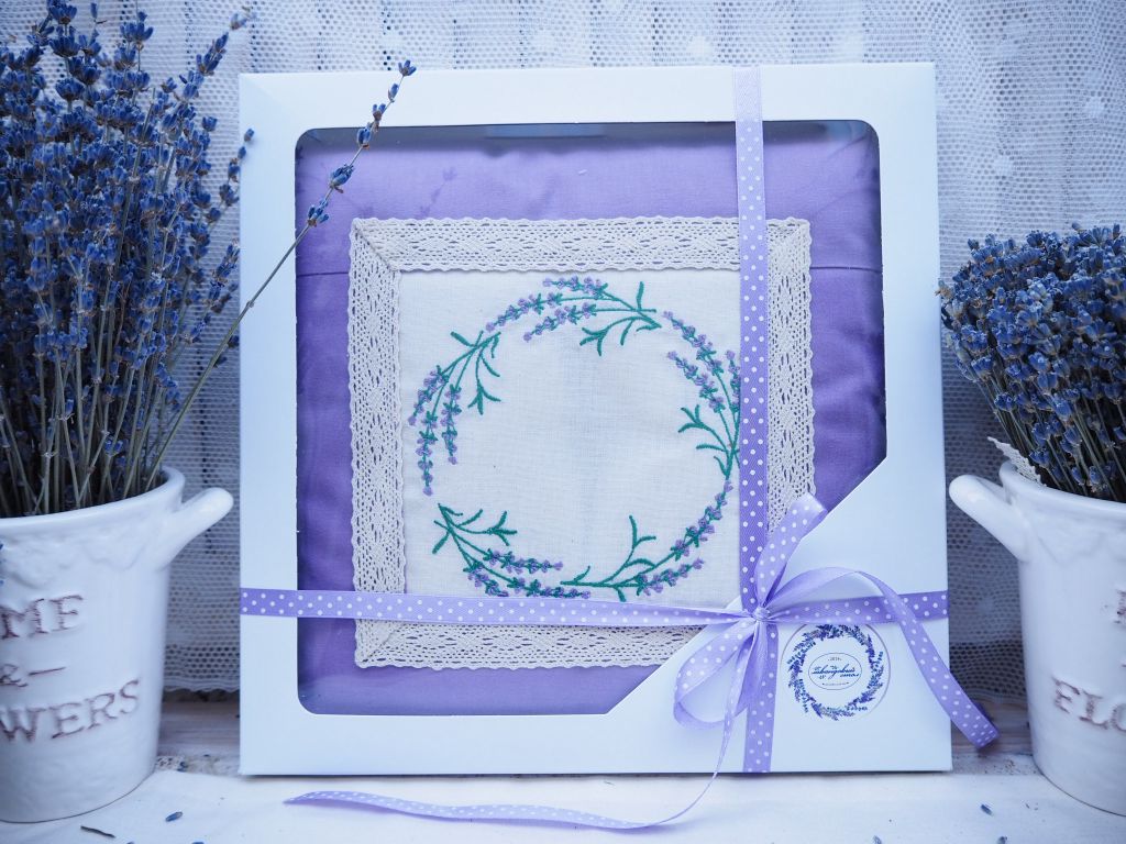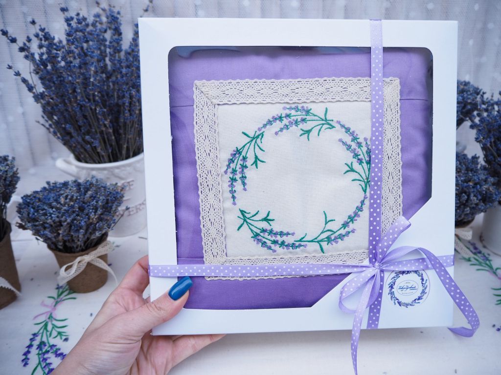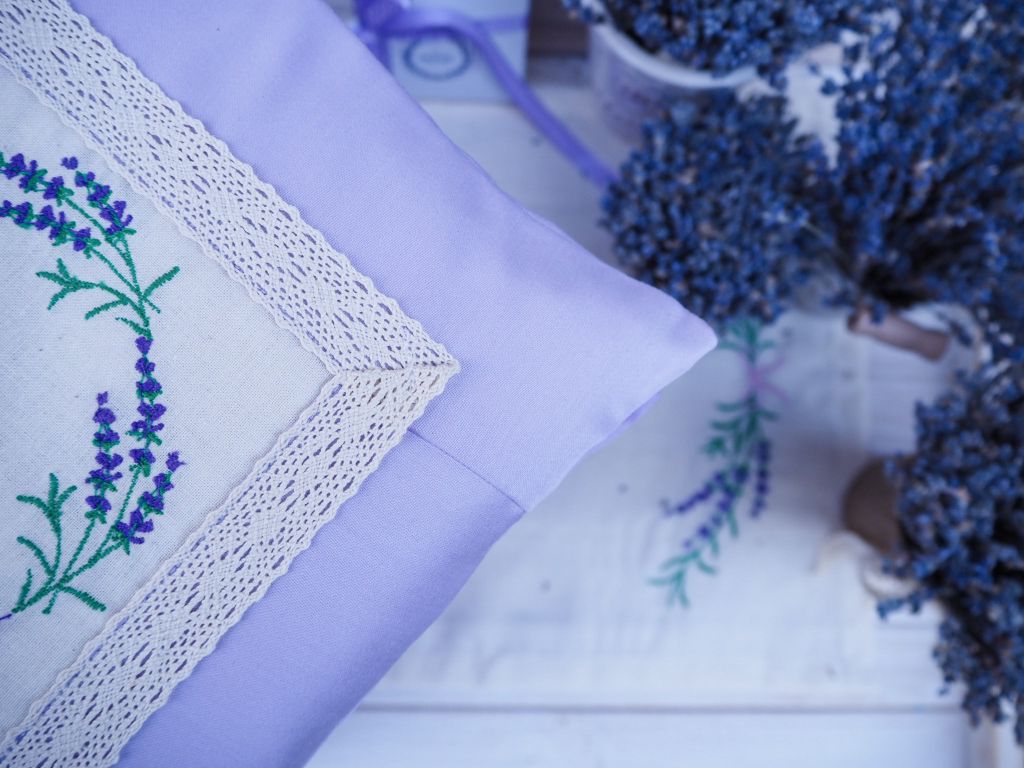 Лавандовая подушка с вышивкой